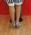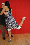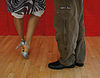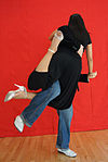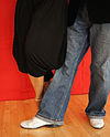 一人のダンサーがパートナーの足に彼女または彼の足を引っ掛けます。 | ![]() |