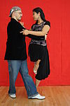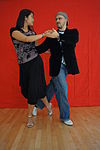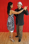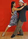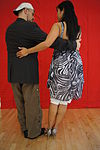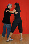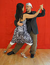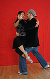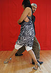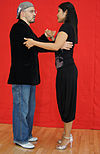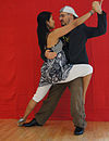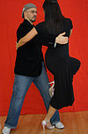 サロンとタンゴヌエボ | ダンサーの胸はお尻よりも互いに近く、胸の高さあたりで接触していることがよくあります(接触点は、リーダーの高さと抱擁の近さによって異なります)。近い抱擁、リーダーとフォロワーの胸には接触しており、彼らは彼らの頭が触れるか、非常に互いに近くで踊っています。 | ![]() |