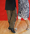 一方または両方のダンサーが、パートナーの脚に足を巻き付けます。このラッピングは、一時的に維持または凍結されることがよくあります。ガンチョとハイレッグラップも参照してください。 | ![]() |