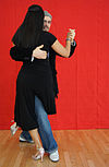 軸から外れた動きで、女性は前かがみになり、前か後ろかクロスまたは装飾的な人物を足で動かします。Volcadasは、オープンとクローズの抱擁で行うことができます。閉じた抱擁の場合、彼女はリーダーの胴体によってサポートされています。開いた抱擁では、リーダーの腕がサスペンションをサポートします。apileも参照してください。 | ![]() |